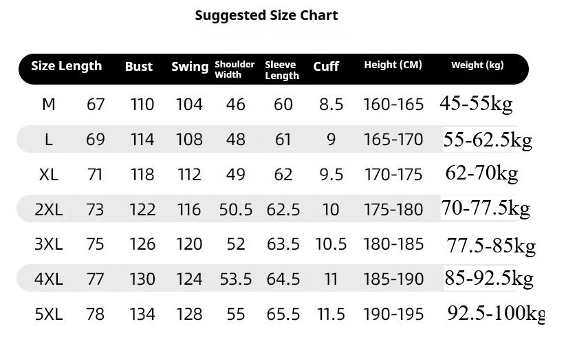 | Size | M, L, XL, 2XL, 3XL, 4XL, 5XL |