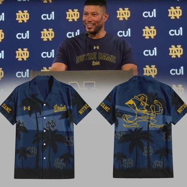 Limited Edition Notre Dame Coach Marcus Freeman Navy/Gold Hawaii Shirt-PU080624504