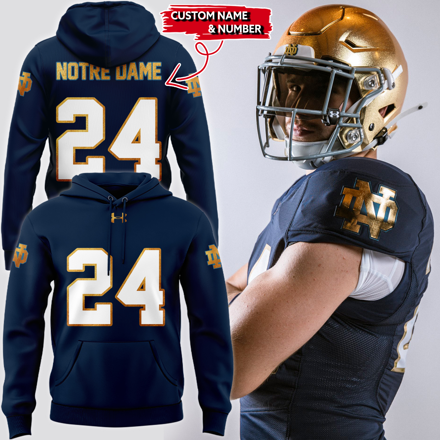 Limited Edition Notre Dame Navy/Gold Custom Hoodie-PU072224555