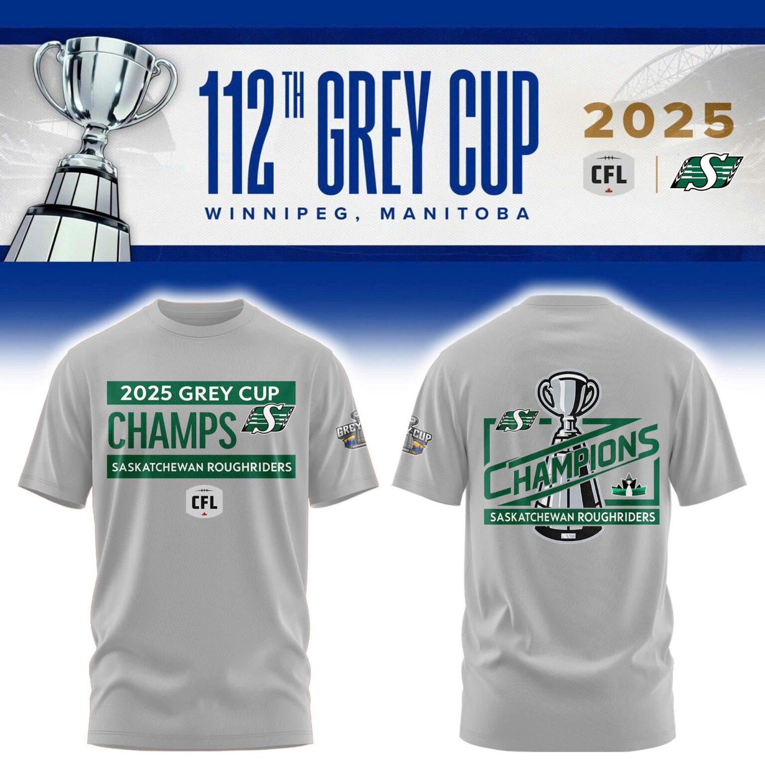 Limited Edition Roughriders 2025 Grey Cup Champions Shirt-AB1711257014